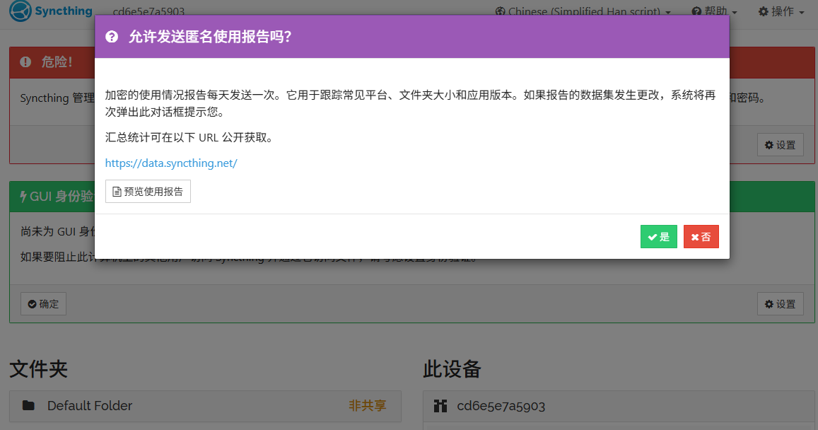 第一次访问会提示发送匿名使用报告,选择否,不发送。