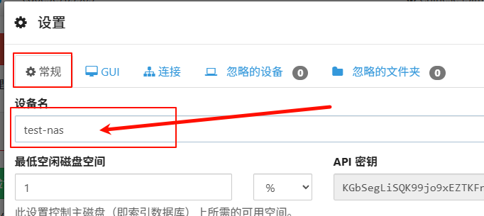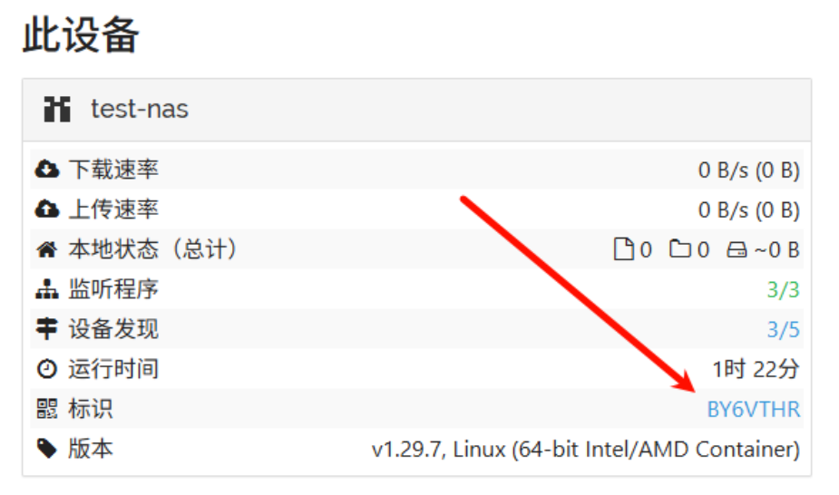 去另一台需要同步的设备B的Syncthing的WebUI主界面,点击远程设备下的添加远程设备按钮,将刚才设备A的唯一标识填入常规选项卡中的设备ID。