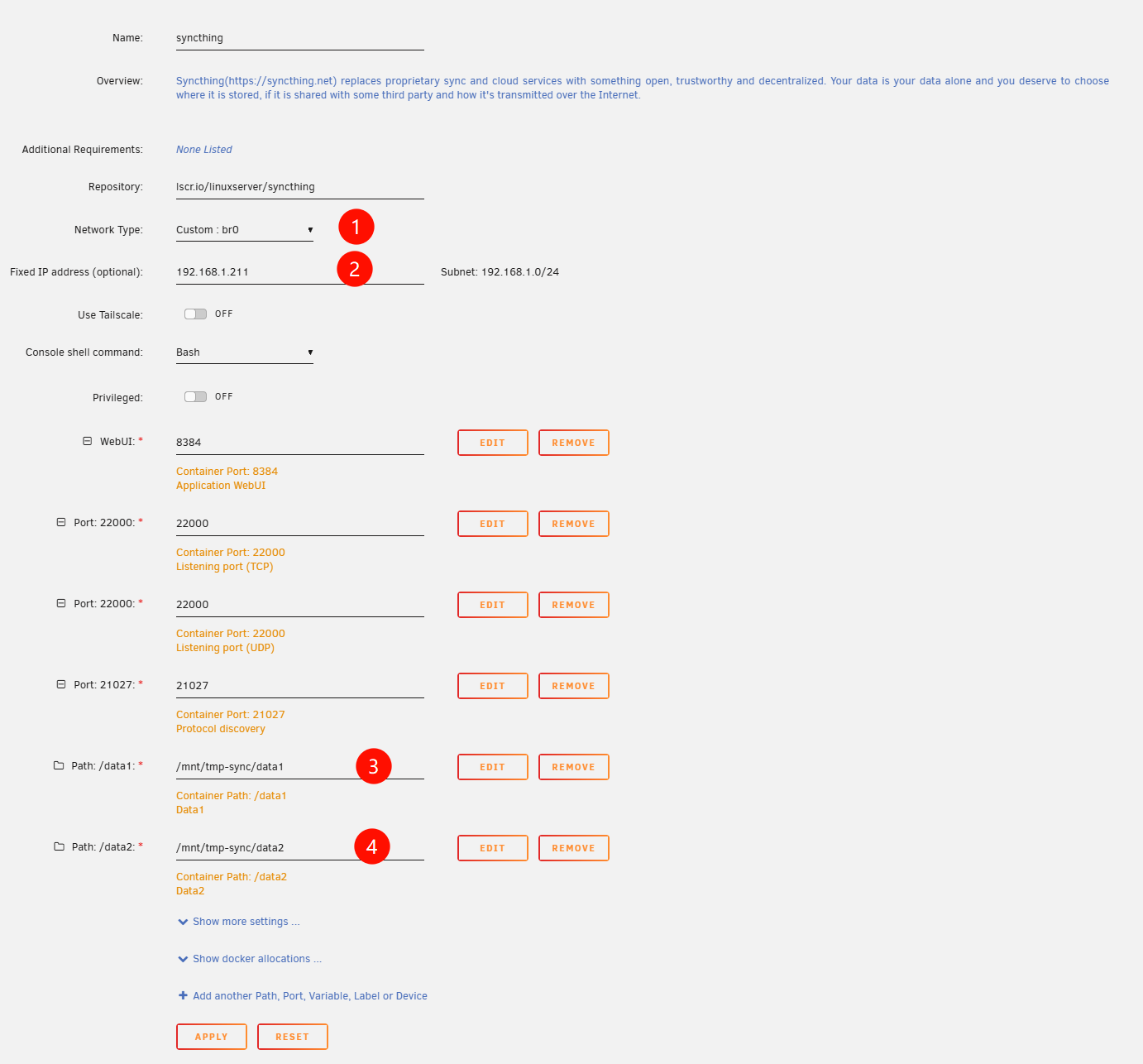 Path: /data1:设置成宿主机(unraid)上同步根目录1。